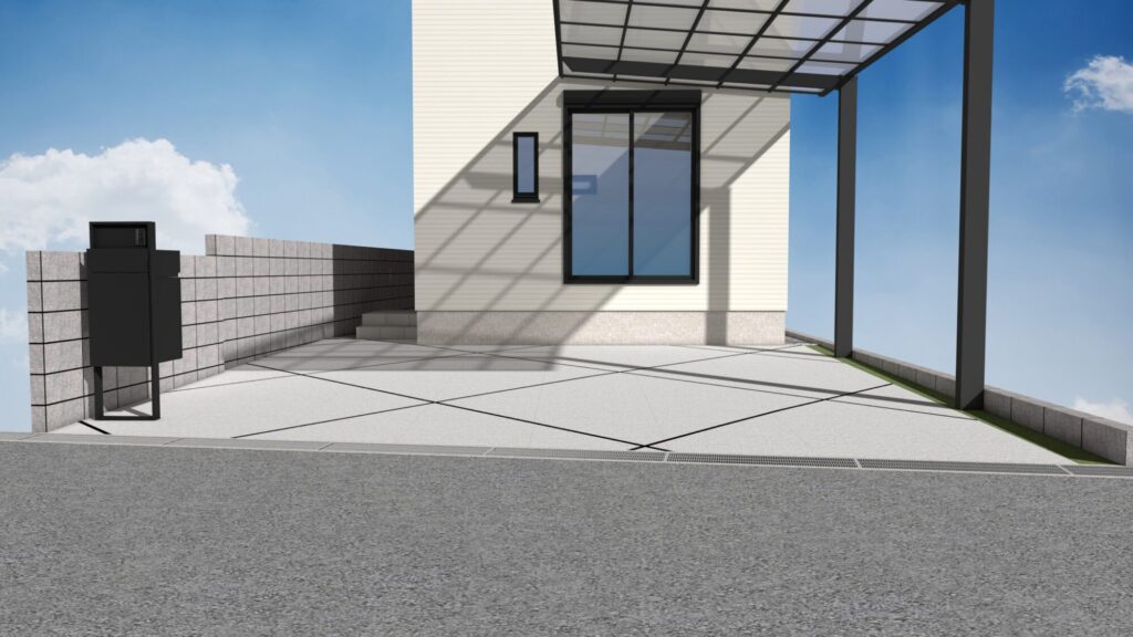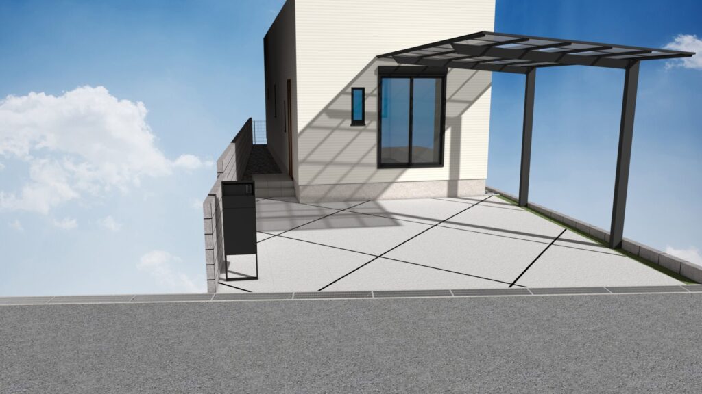 開放感を保ちながら、建物の外観を引き立てる機能的な外構デザインです。