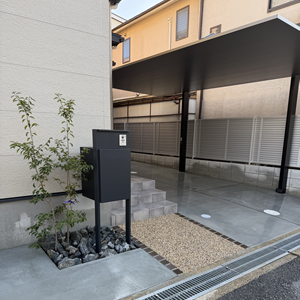 新築住宅の外構工事として、住まいの建築デザインと調和するLIXIL カーポートSCおよびナスタ製宅配ボックスの設置を行いました。 外構は建物の第一印象を…